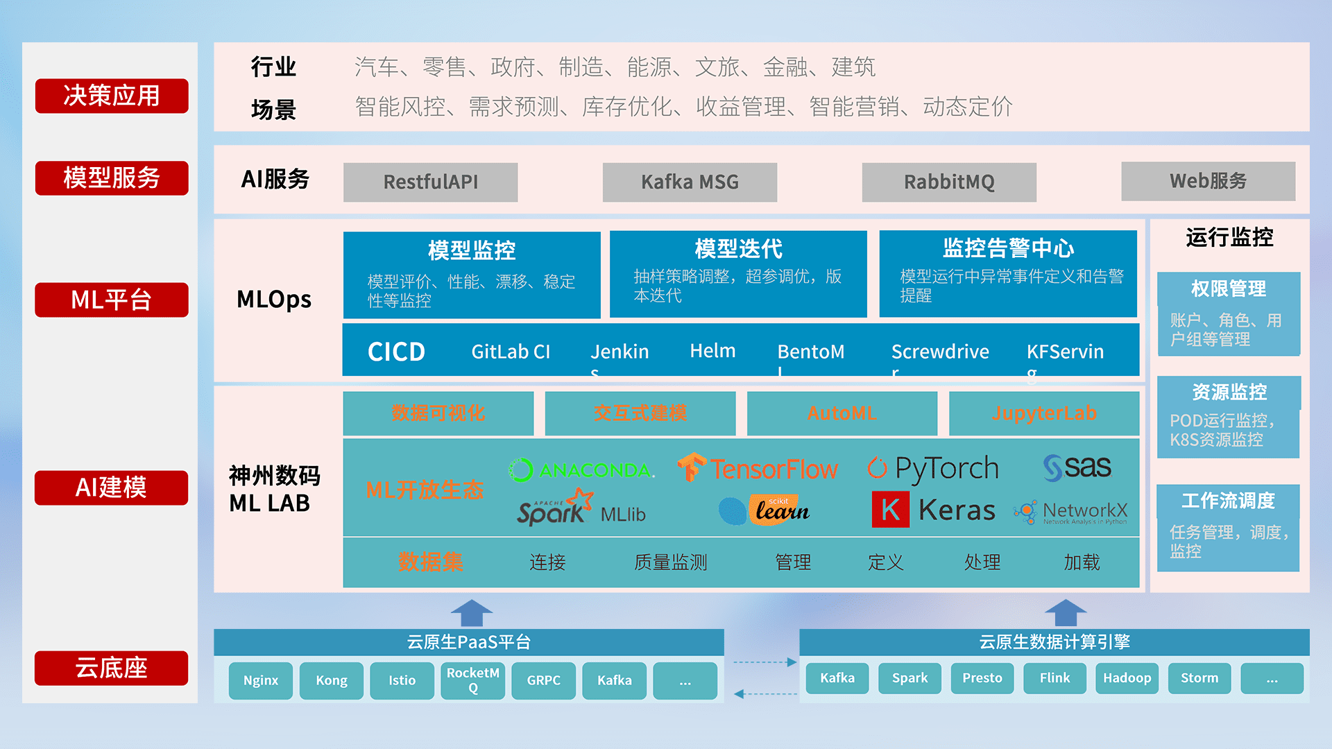 数据+模型双引擎驱动,,面向智能服务场景,,,快速灵活利用AI技术,,支持业务决策,,,,助力企业智能化转型破局。。
